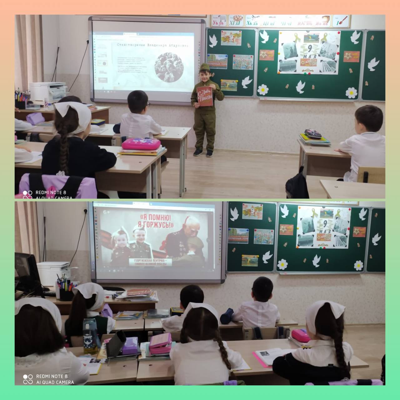 В МБОУ «Гимназия №3» г. Грозного провели классные часы «Они сражались за Родину!», уроки мужества, конкурс рисунков ко Дню Победы.