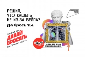 1 мая по нацпроекту «Демография» АНО «Национальные приоритеты» совместно с Минздравом России запустило коммуникационнуюкампанию «Электронные сигареты и что они скрывают».Рекламные баннеры побуждают людей задуматься, так ли безопасны электронные сигареты для здоровья и какие последствия для организма может спровоцировать курение. Решил, что кашель не из-за вейпа? Считаешь, что курение электронных сигарет не вредно и это просто «клубничный пар»? Да брось ты.